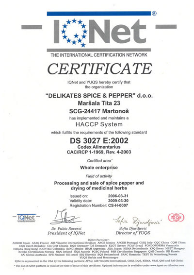 | Megtiszteltetés számunkra, hogy bemutathatjuk Önnek cégünket és megismertethetjük termékkinálatunkkal. Vajdaságban, Észak-Bácskában található Martonos, ez a kis település, mely ezeréves múltra tekint vissza. Messze földön ismert kitűnő természeti adottságairól ami a mezőgazdasági feltételeket illeti. E falu központjában található a „Delikates spice&pepper” kft., mely fűszerpaprika feldolgozásával és forgalmazásával foglalkozik. A megfelelő természeti adottságoknak, melyek Észak-Vajdaságban jelen vannak és a hagyományos feldolgozási tapasztalatoknak köszönhetően a martonosi fűszerpaprika nemzetközi hirneve már régóta büszkesége a helybeli lakosságnak.